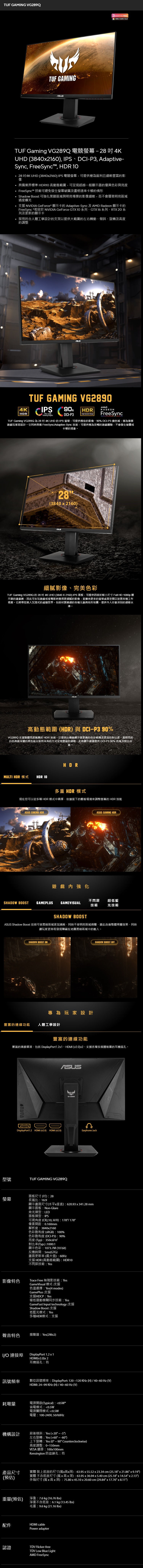 ASUS 華碩 TUF Gaming VG289Q 28型 4K IPS 電競螢幕