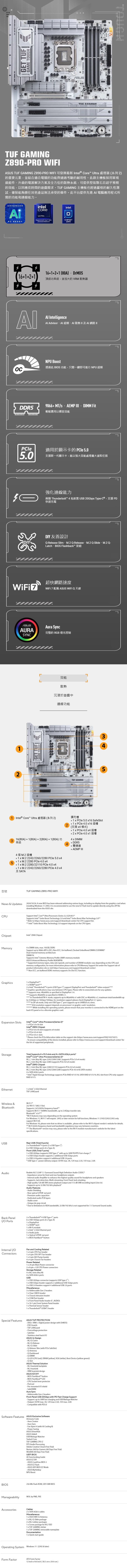 華碩 ASUS TUF GAMING Z890-PRO WIFI INTEL主機板