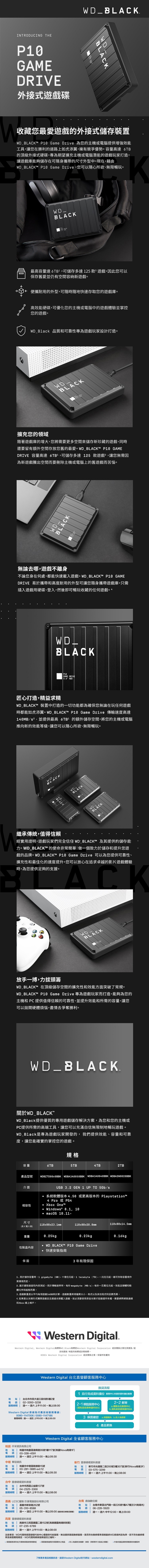 WD 黑標 P10 Game Drive 6TB 2.5吋電競行動硬碟 WDBZ7D0060BBK-WESN