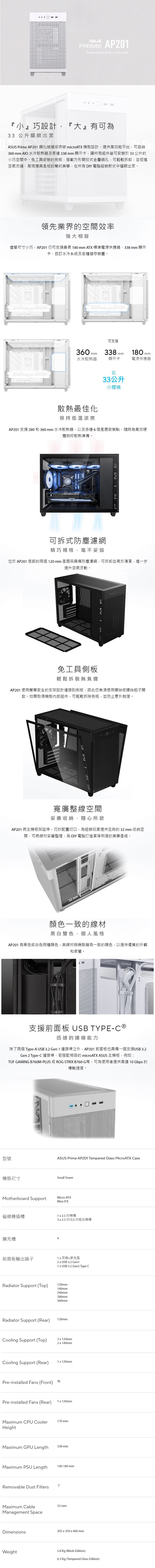ASUS 華碩 Prime AP201 Tempered Glass MicroATX 鋼化玻璃機殼 白色(PRIME-AP201-WHITE-EDITION-TG)