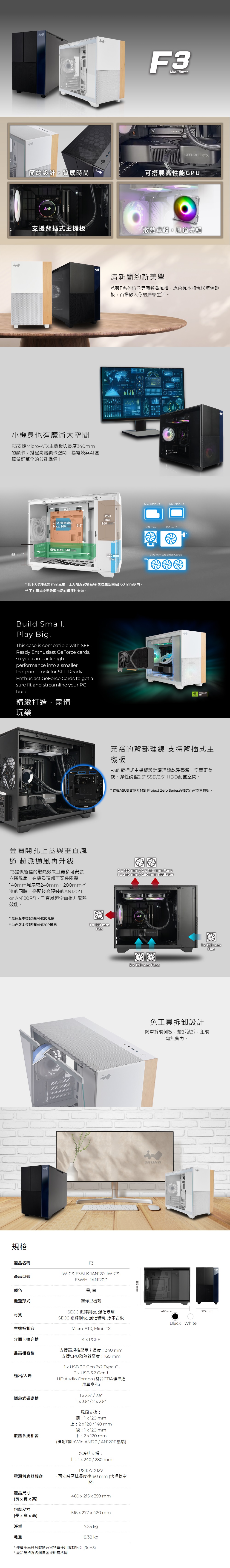 迎廣 InWin F3【黑】玻璃透側 支援背插 M-ATX 電競機殼
