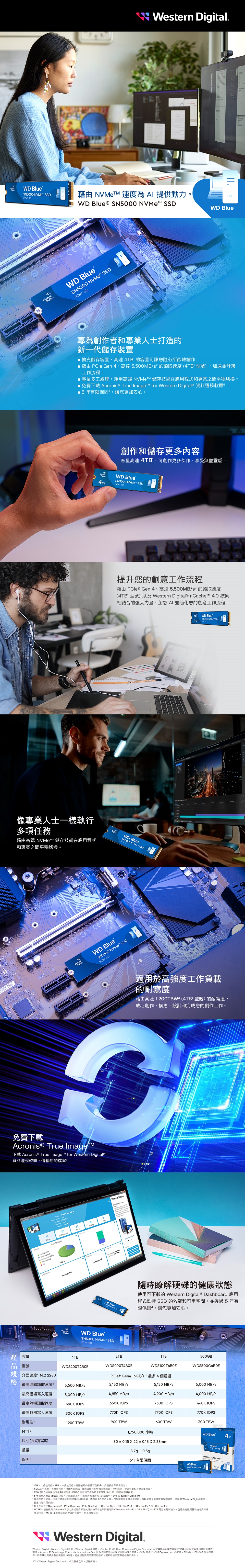 WD 藍標 SN5000 500GB M.2 PCIe 4.0 NVMe SSD 固態硬碟 WDS500G4B0E
