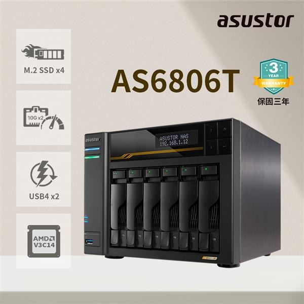 ASUSTOR 華芸 AS6806T 6Bay NAS 網路儲存伺服器