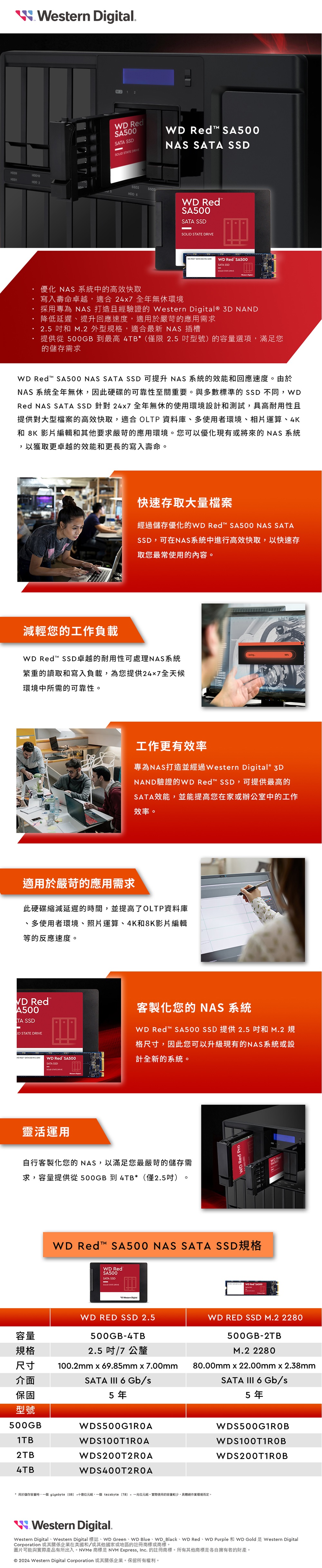•SATA  6Gb/s,NAS專用硬碟SSD