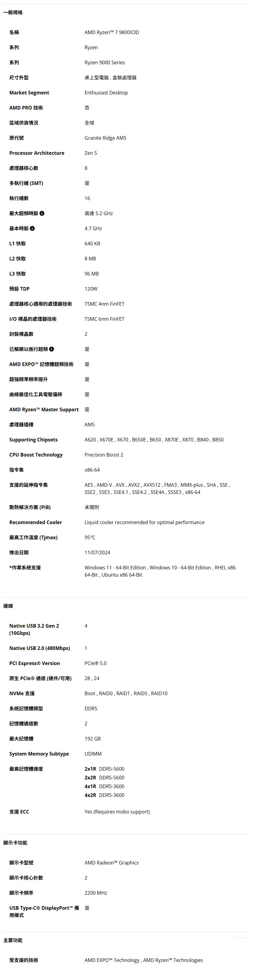 AMD Ryzen 7 9800X3D R7-9800X3D 8核16緒處理器 100-100001084WOF