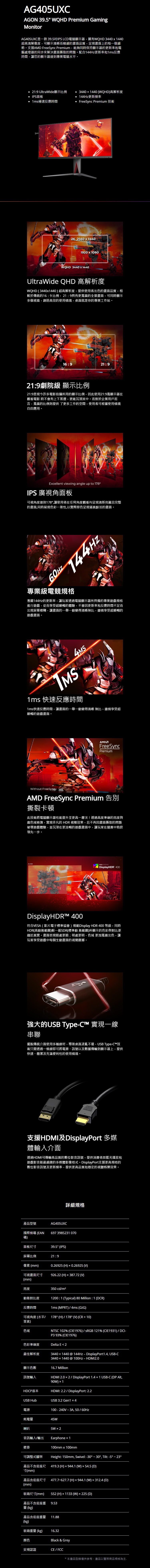 AOC 艾德蒙 40型 IPS 2K 液晶電競顯示器 AG405UXC