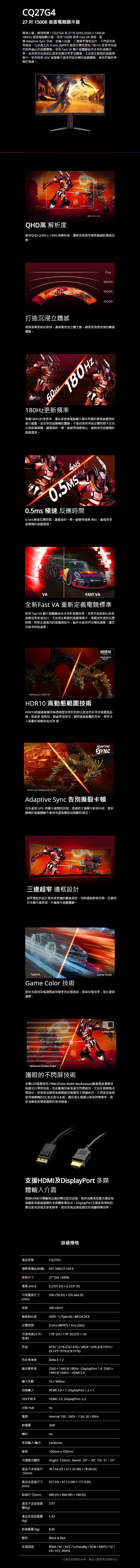 AOC 艾德蒙 27型 2K 曲面液晶電競顯示器 CQ27G4