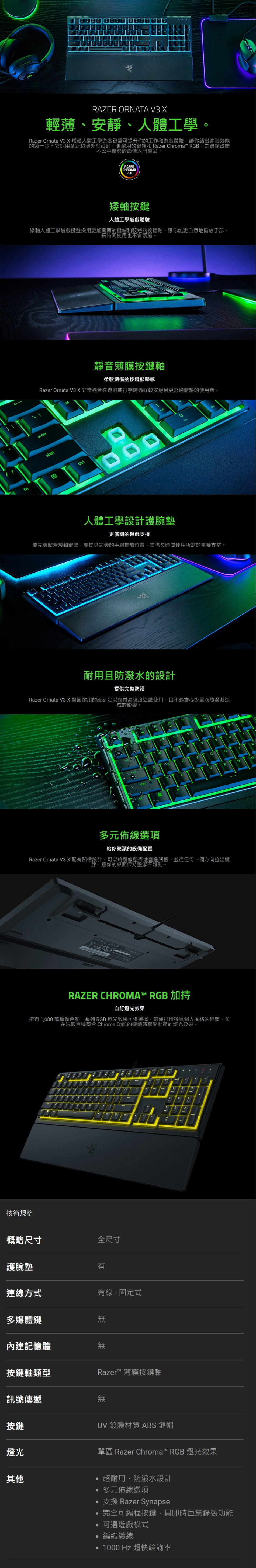 雷蛇 Razer Ornata V3X 雨林狼蛛V3X 薄膜式RGB鍵盤