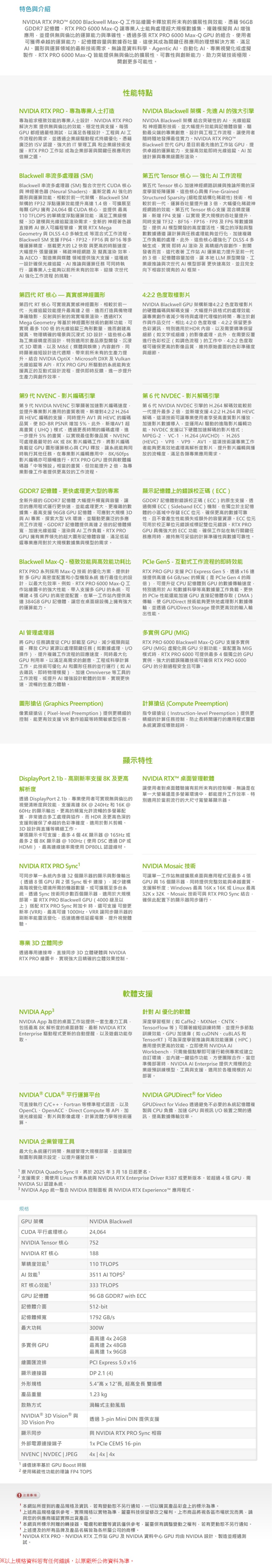 麗臺 NVIDIA RTX PRO 6000 Blackwell Max-Q 96GB GDDR7 Workstation Edition 工作站繪圖卡