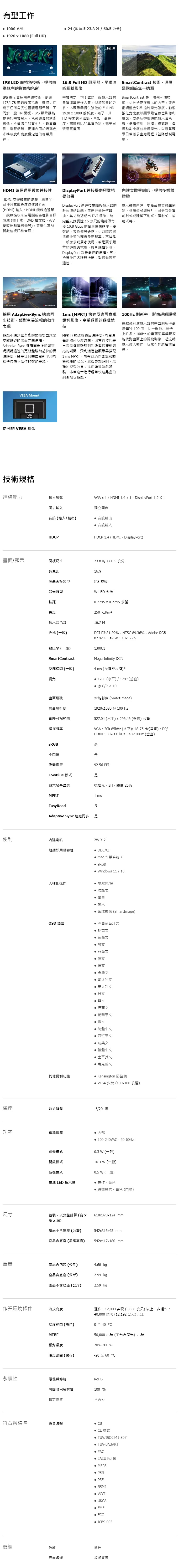 PHILIPS 飛利浦 24型 Full HD IPS 內建喇叭電腦螢幕 24E1N1200A