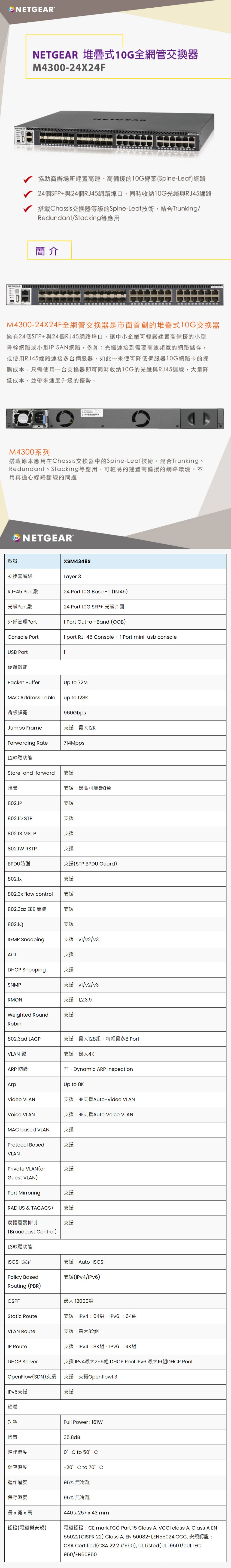 NETGEAR M4300-24X24F(XSM4348S) 48埠10Gb可堆疊全網管交換器