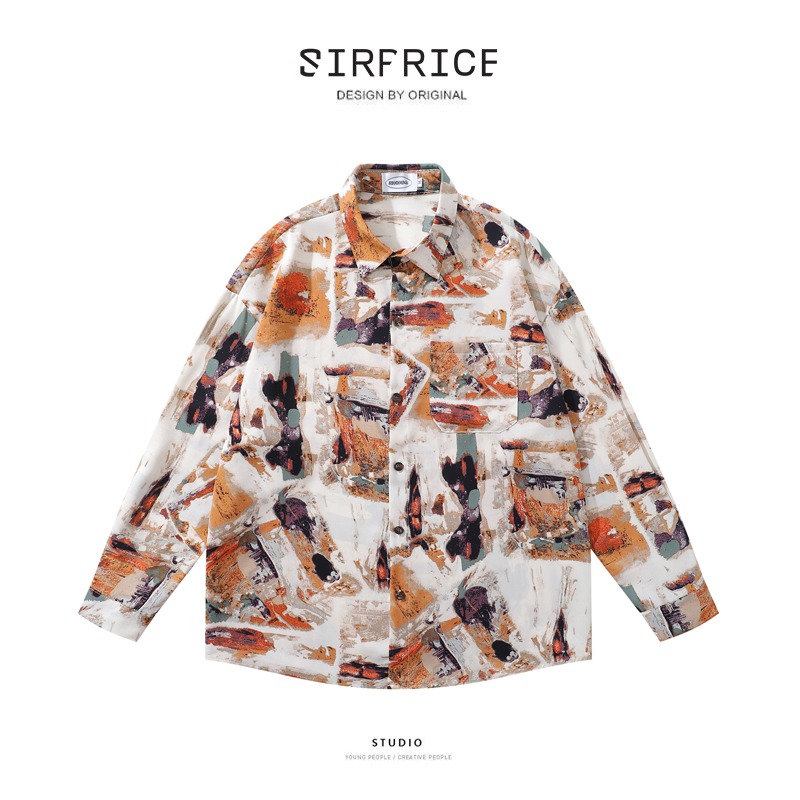 長袖襯衫 花襯衫 復古 藝術家 設計師 暈染 口袋襯衫 襯衫男 休閒襯衫 - SIRPRICE Select Shop