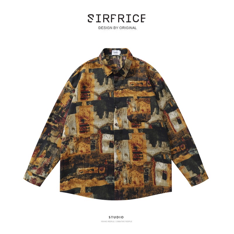 長袖襯衫 花襯衫 港風 復古 古著 抽象 口袋襯衫 襯衫男 休閒襯衫 - SIRPRICE Select Shop