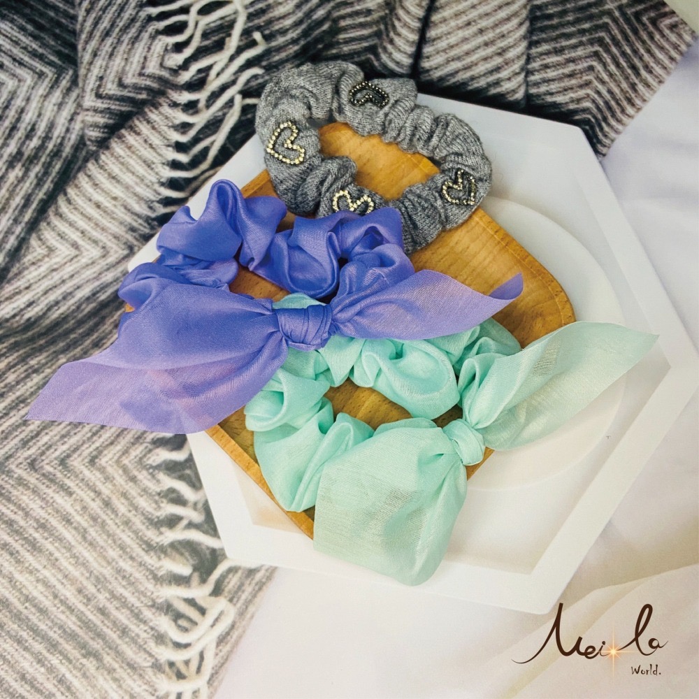 226-針織灰鑲鑽愛心髮圈
