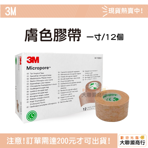 3M 1533-1 膚色通氣膠帶 1吋/12入 通氣膠帶 透氣膠帶 盒裝 紙膠