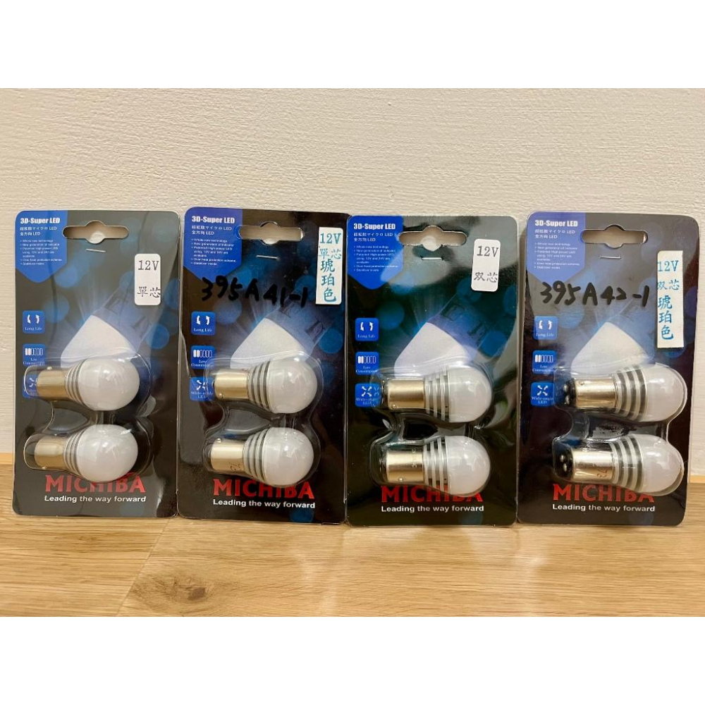 1. 395NW41-1 單芯燈泡 12V 原型LED燈泡 1156 白光 8000K 台灣Michiba 一組兩顆350元 2. 395A41-1 單芯燈泡 12V 原型LED燈泡 1156NA 橘黃色 琥珀色 台灣Michiba 一組兩顆390元 3. 395NW42-1 雙芯燈泡 12V 原型LED燈泡 1157 白光 8000K 台灣Michiba 一組兩顆350元 4. 395A42-1 雙芯燈泡 12V 原型LED燈泡 1157NA 橘黃色 琥珀色 台灣Michiba 一組兩顆390元 5. 395NW41-2 單芯燈泡 24V 原型LED燈泡 白光 8000K 台灣Michiba 一組兩顆350元 6. 395A41-2 單芯燈泡 24V 原型LED燈泡 橘黃色 琥珀色 台灣Michiba 一組兩顆390元 7. 395NW42-2 雙芯燈泡 24V 原型LED燈泡 白光 8000K 台灣Michiba 一組兩顆350元 8. 395A42-2 雙芯燈泡 24V 原型LED燈泡 橘黃色 琥珀色 台灣Michiba 一組兩顆390元