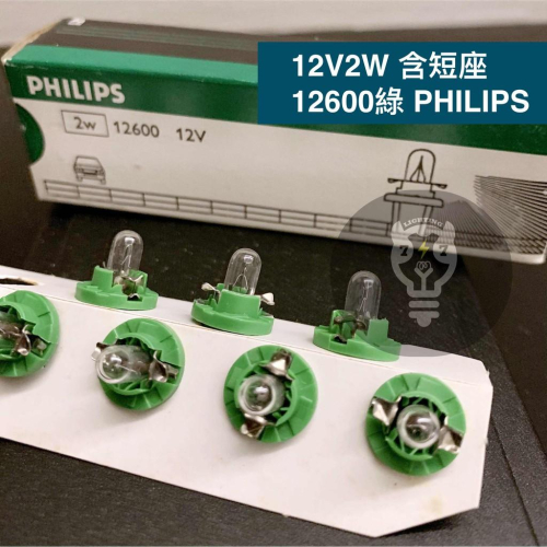 【12V2W附座 綠/藍】飛利浦 PHILIPS 法國製 儀表燈泡 車用燈泡 12600 12602