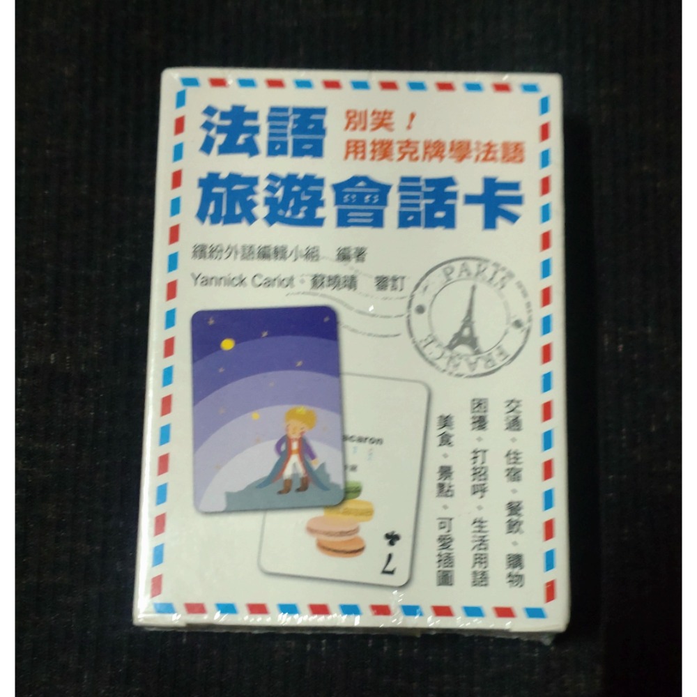 是撲克牌也是學習卡,內有54張卡片,包含交通、住宿、餐飲、購物、困擾、打招呼、生活用語、美食、景點、可愛插圖……