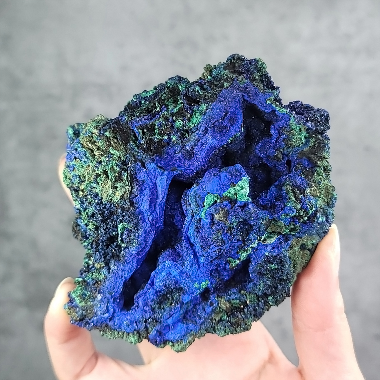 與孔雀石置換的湛藍色螺旋狀橫切面