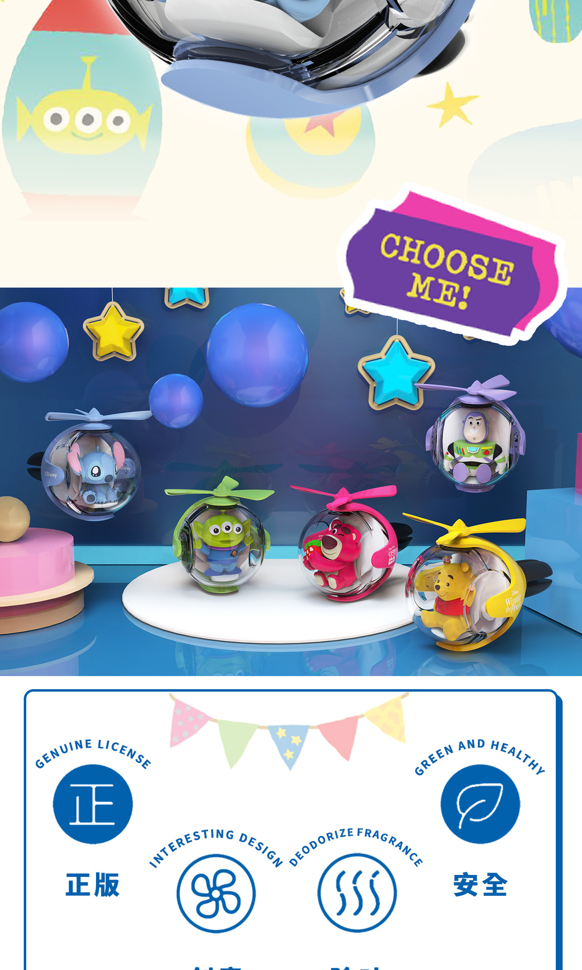 正版 迪士尼飛行球車用薰香 三眼怪薰香 史迪奇 熊抱哥 飛行球薰香 車內薰香 出風口薰香 擴香 車用芳香