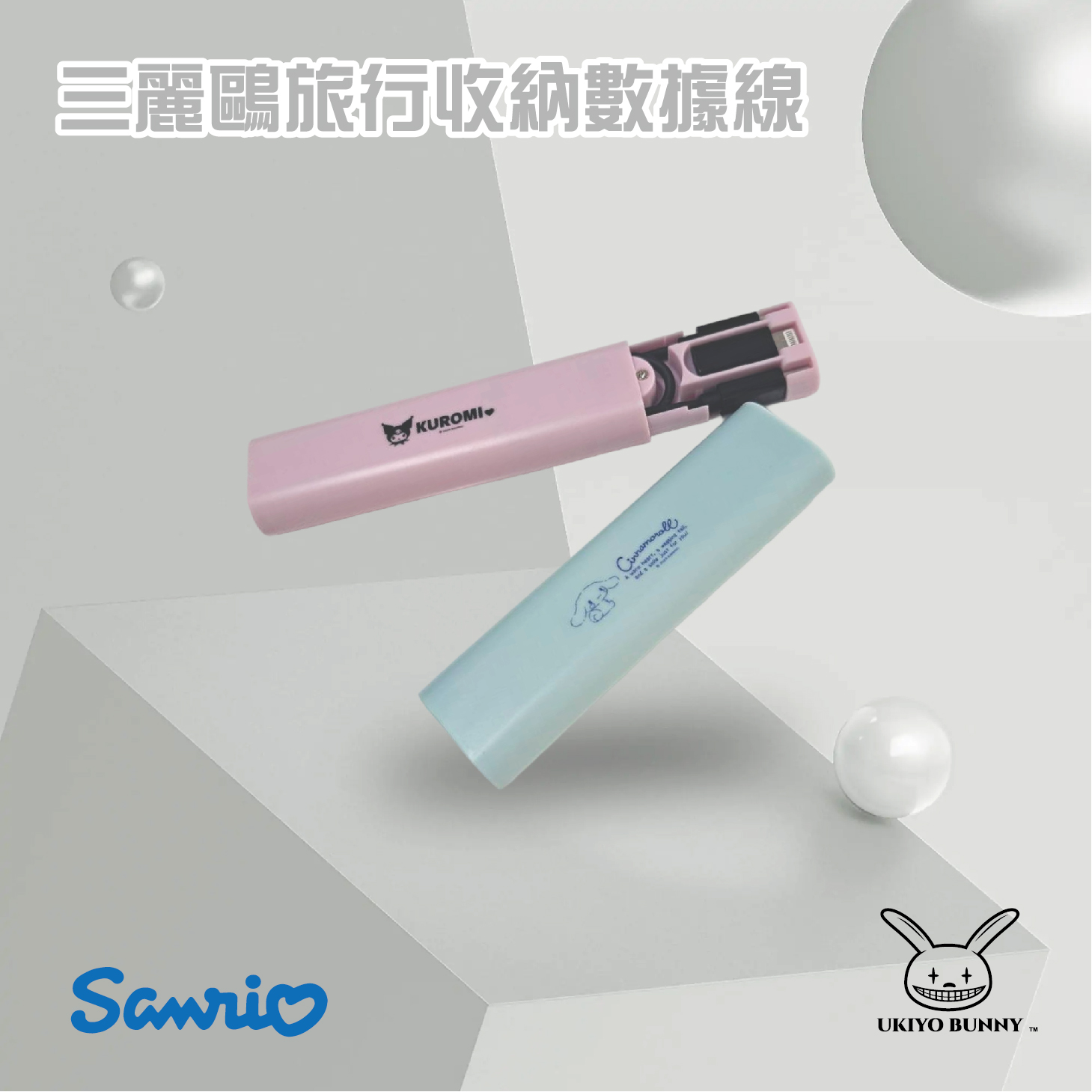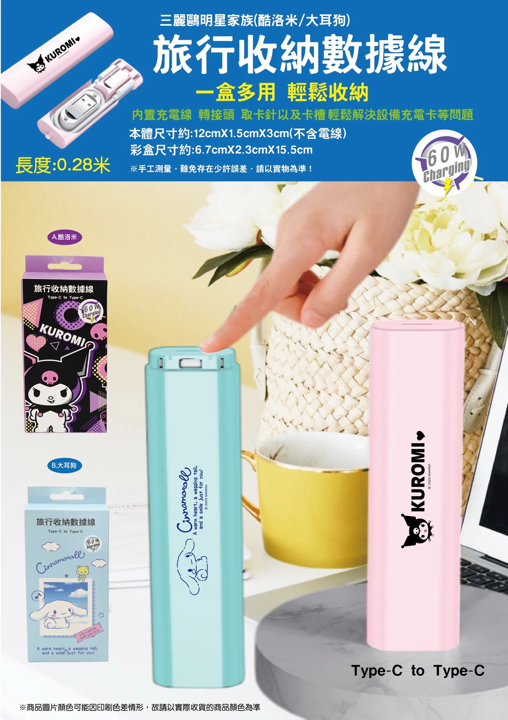 正版 三麗鷗 酷洛米 大耳狗 旅行收納數據線 0.28米 充電線 數據線