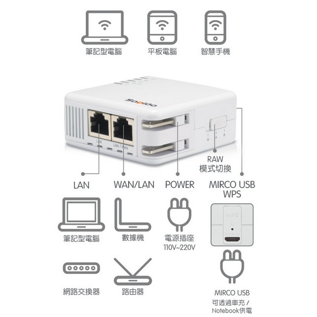 Sapido 150M內建可折式插頭超值雲無線分享器