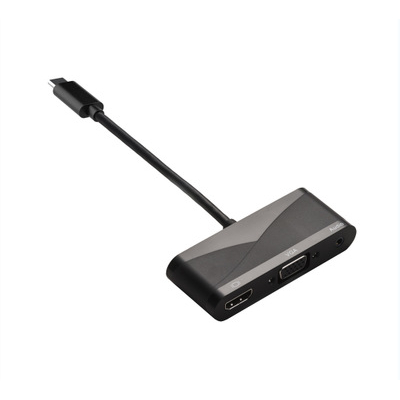 產品功能:此產品是一種便攜式多功能轉換線,通過帶有 USB 3.1 Type C ( DP 模式)接口的數字信號輸入轉換為 HDMI ( 4K*2K ) /VGA+Aduio 音頻與視頻輸出 , 且支持音頻、視頻同步輸出。