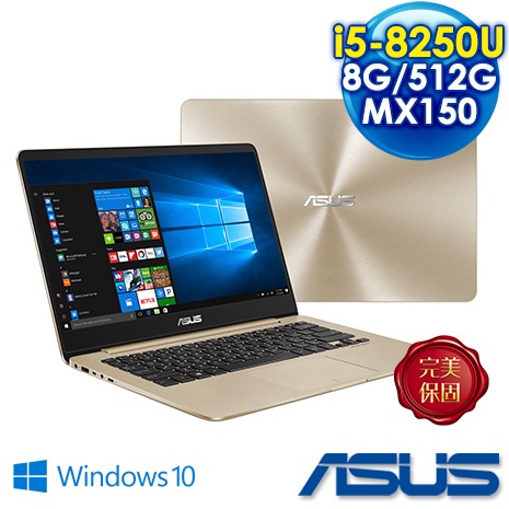 ASUS 華碩 UX430UN 14吋FHD筆電-璀璨金(i5-8250U/8G/512G SSD/MX 150 2G/W10)
