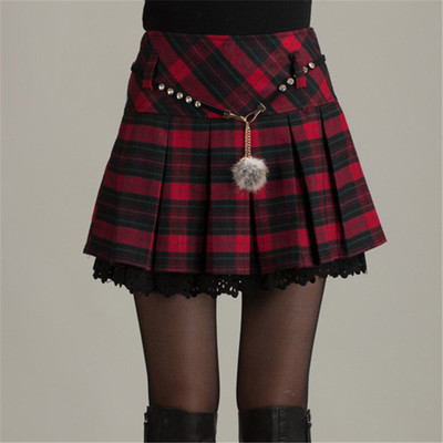 | 裙長 | 短裙 | 流行元素 | 拼接 | 顏色 | 紅色,蘭格 |