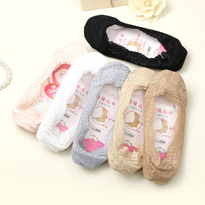 韓國淺口隱形蕾絲矽膠腳底防滑船襪防脫隱形襪(灰色) J-14162