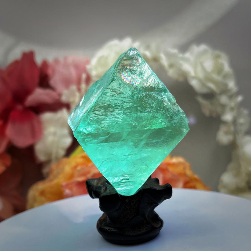 E4純天然稀有巨大八面體螢石彩虹光晶體淨透 能量原礦石收藏等級Size:60.2*57.6*57.5MM