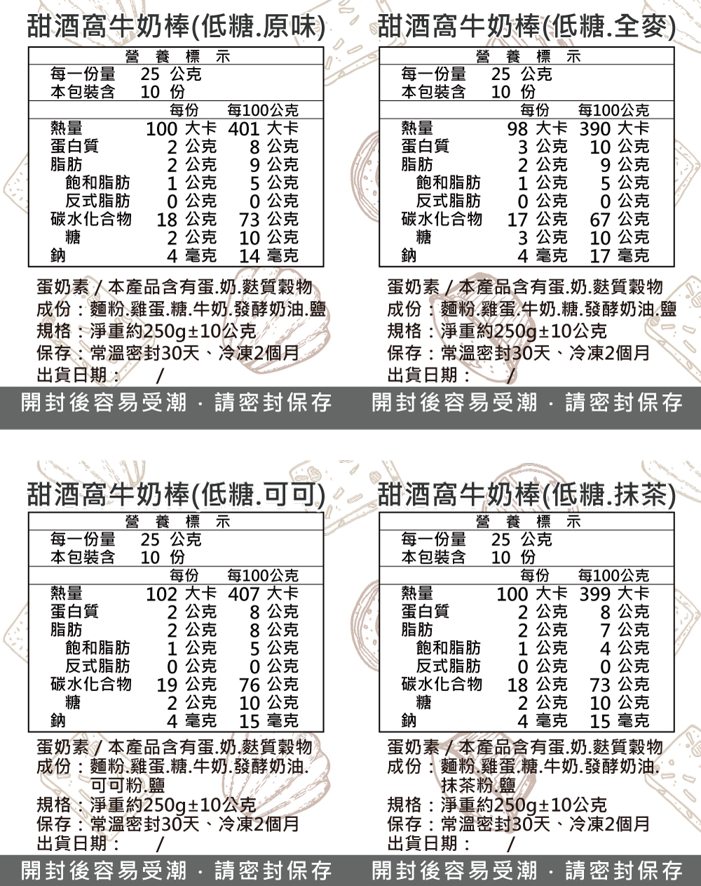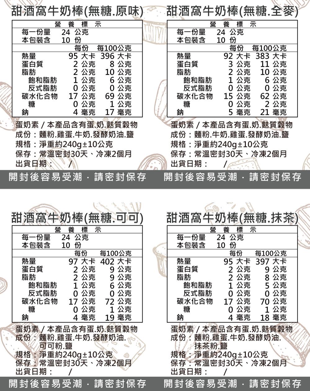 甜酒窩.無糖/減糖《牛奶棒.硬餅乾》原味.全麥.抹茶.可可.肉桂.藜麥.亞麻籽.辣味.芝麻