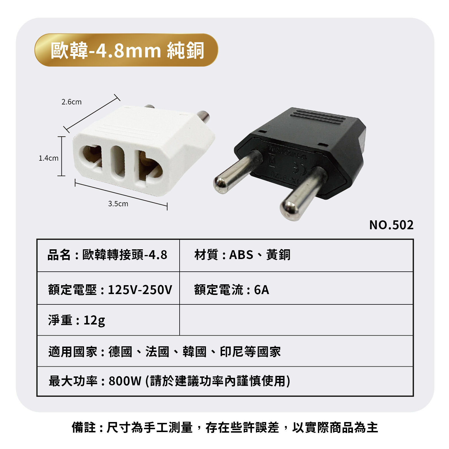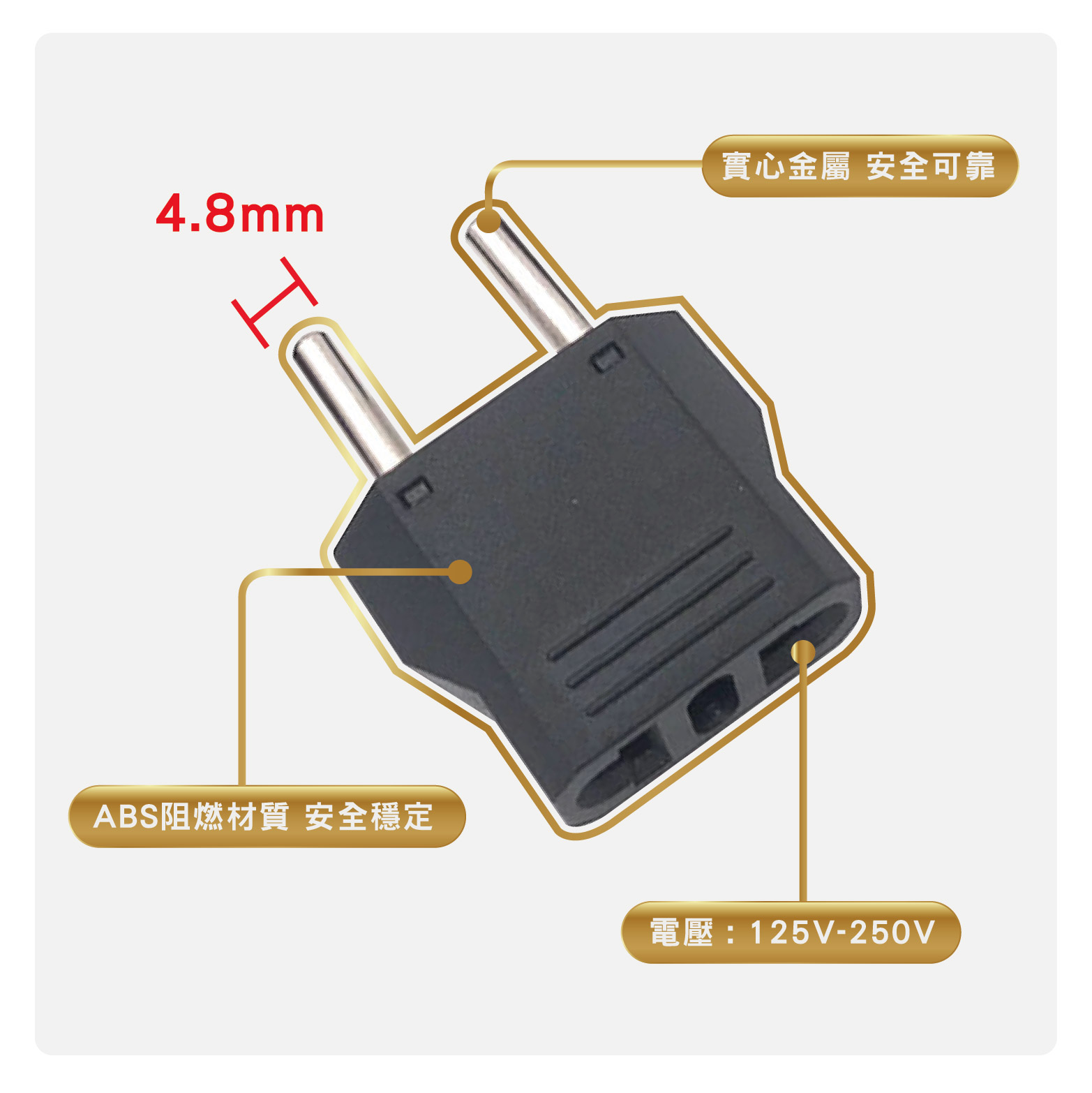 (其他歐洲國家為小圓4.0mm插座,使用此款會較難插入,建議選用4.0mm小圓轉換插頭)