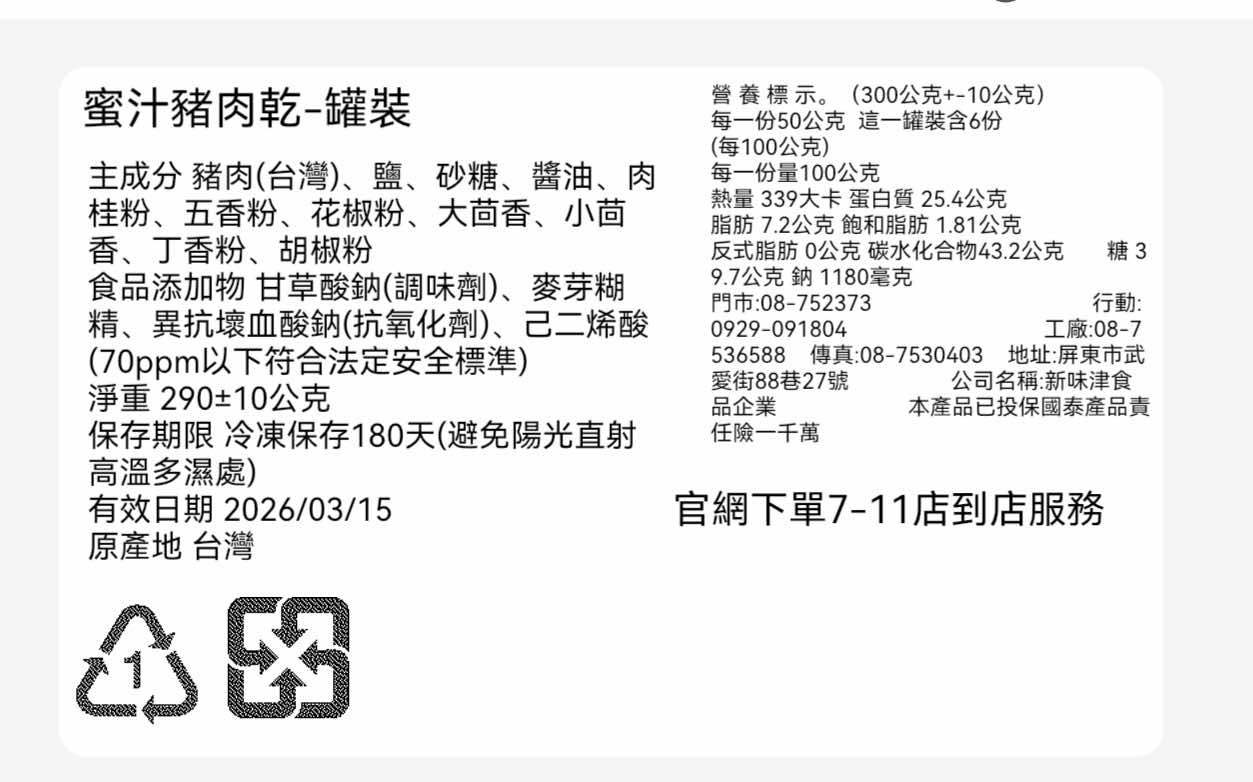 堅持使用100%的台灣在地新鮮豬肉,就是要讓您吃得安心與美味。精選溫體豬肉後腿剔絲入味,再經文火侯控溫烘烤而成,肉質不乾不澀咬勁十足,咬在口中香甜好滋味。最新研發的香蜜濃郁豬肉條,口感更是一絕,甜香適中、香氣濃郁,愛不釋口的最新零嘴。