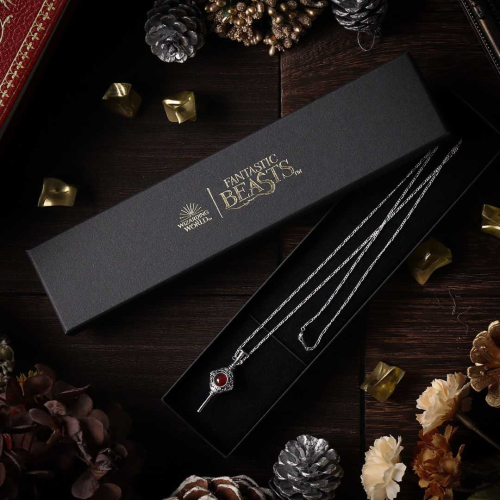 吊墜中央鑲有一顆如染上鮮血般深紅的天然寶石,佩戴此鍊彷彿重現葛林戴華德與鄧不利多立下血之誓約的震撼時刻。