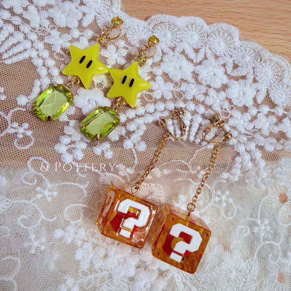 🇯🇵日本 USJ大阪環球影城 超級瑪利歐夾式耳環 問號磚塊