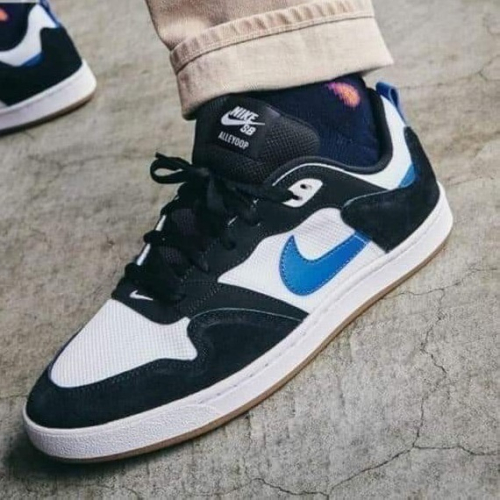 男款 NIKE SB ALLEYOOP 白黑藍 網布 麂皮 厚鞋舌 滑板 休閒鞋
