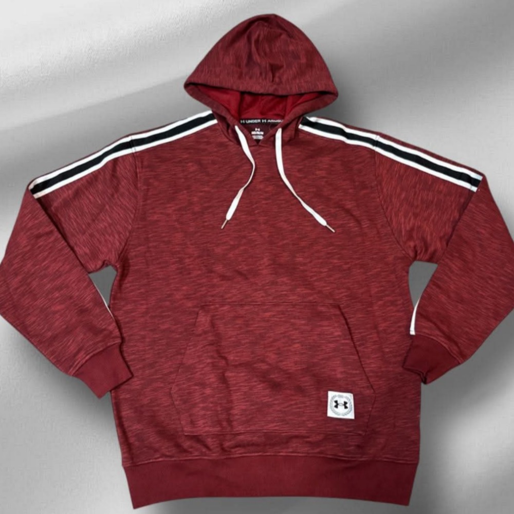男子 UA Essential Fleece Heritage 刷毛 保暖 連帽長袖上衣 酒紅色 美版偏大