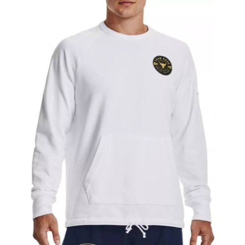 男子 UA Project Rock Heavyweight Terry 白色 巨石強森 長袖圓領上衣