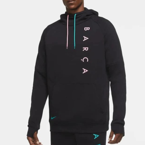 男子 Nike FC Barcelona Hoodie 黑色 巴塞隆那足球俱樂部 刷毛 保暖 連帽上衣