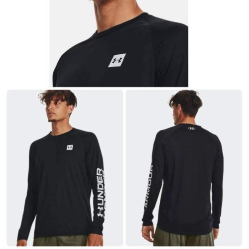 男子 UA Tech™ Print Fill黑色 吸濕排汗 薄長袖T恤 美版