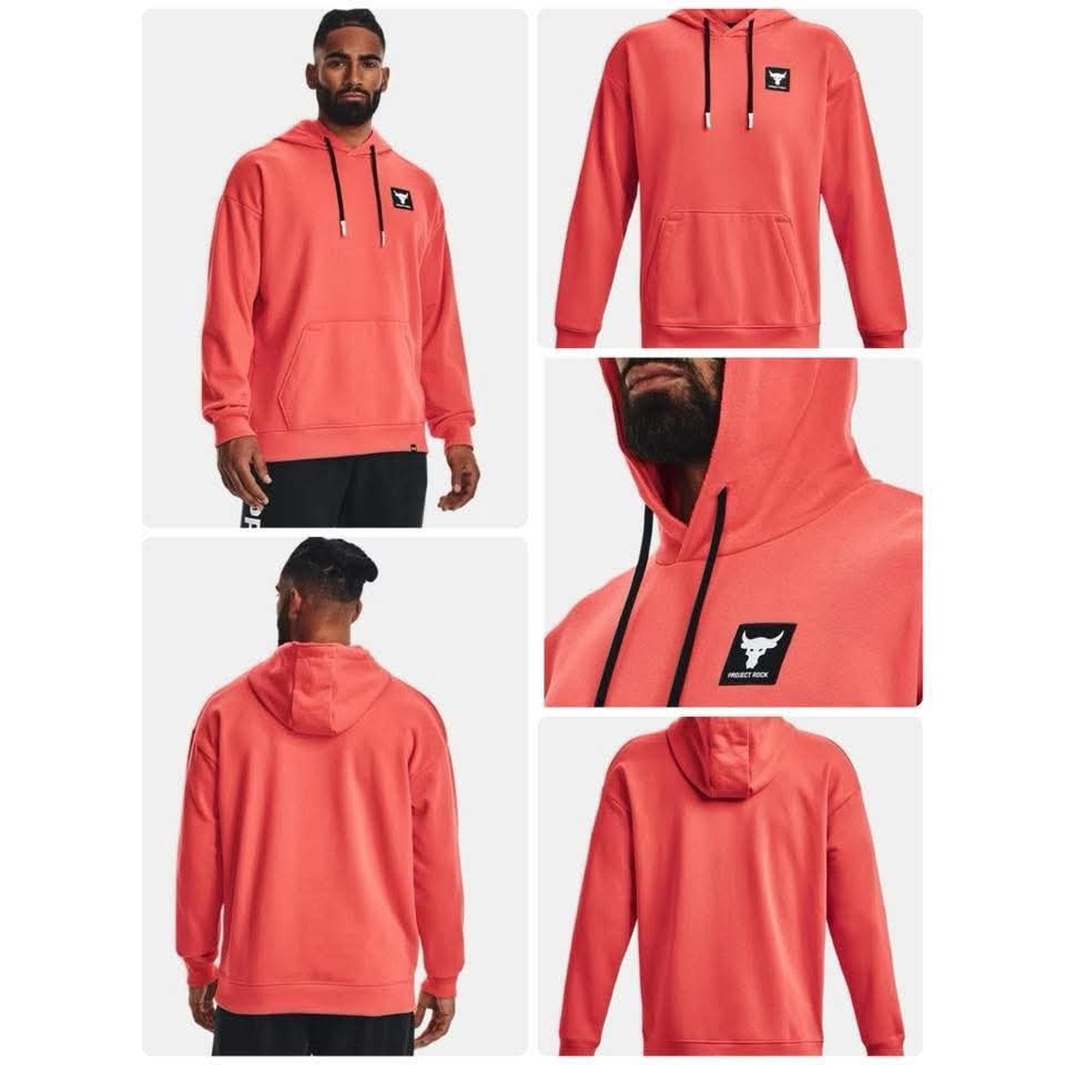 男子 UA Project Rock Heavyweight Terry 橘色 高磅數 連帽長袖上衣