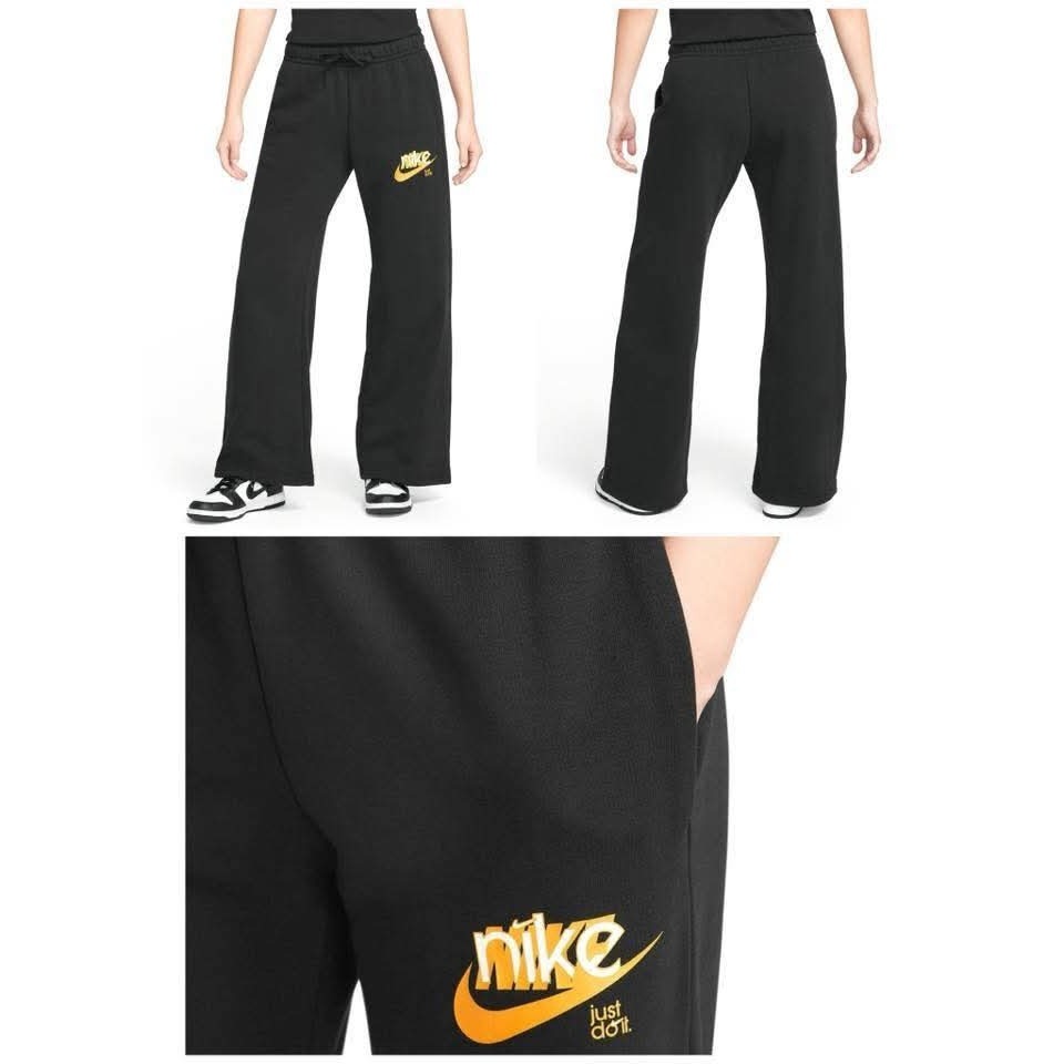 女子Nike NSW Club Fleece 黑 黃 毛圈布 寬褲 休閒長褲 定價2180