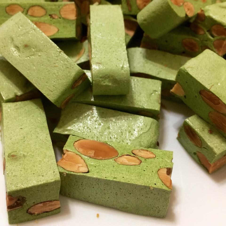 日本小山圓青嵐抹茶粉、法國鸚鵡細蔗糖、紐西蘭純奶粉、法國AOP發酵奶油、人道飼養雞蛋、美國藍鑽杏仁粒、水、麥芽糖、法國葛宏德天然海鹽。