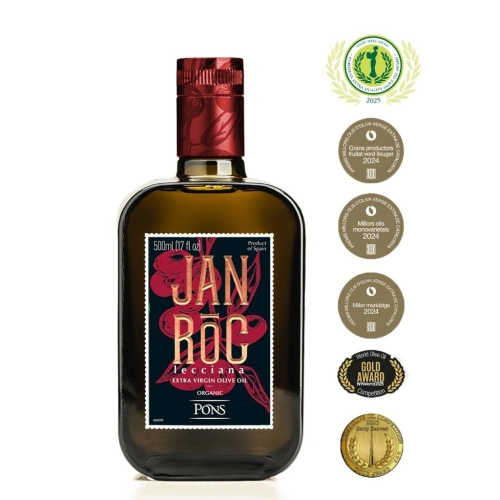 An oil tribute to Pons Fifth Generation. Early Harvest. Made with locally grown Lecciana olives from our lands in Lleida. Organic oil obtained at Pons mill. Intense and elegant notes, a balance between apple citrus and banana sweetness. A unique, intensely peppery oil. Maximum acidity under 0,25%. Ideal to finish raw dishes.