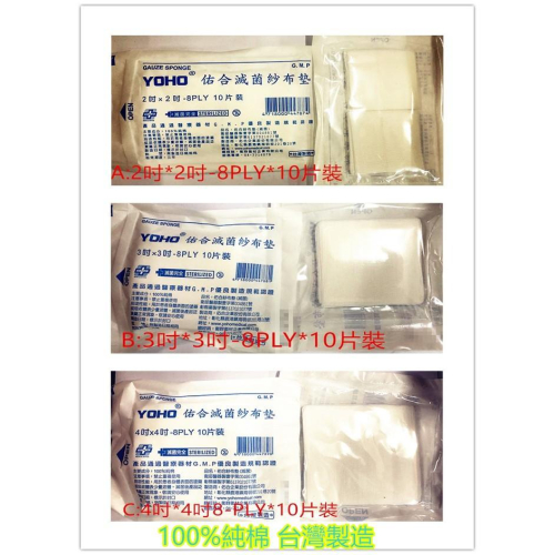 【YOHO佑合】滅菌紗布墊 純棉 2吋X2吋X10片 3吋X3吋X10片 4吋X4吋X10片 紗布 滅菌紗布墊 紗布塊