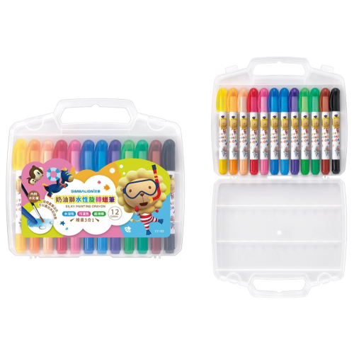水溶性蠟筆,質地滑順,方便混色,顏色飽和顏色鮮明,旋轉出芯筆桿設計不沾手,適合孩童抓握