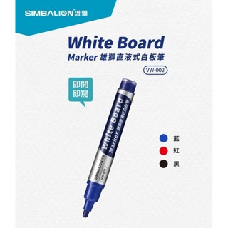 特色【雄獅VW-002直液式白板筆】具有專利的直液式結構,大容量使墨水量更充足,顯色度佳,書寫出的字跡皆能清晰明亮。它的免按壓設計,可於開蓋後立即流暢書寫,均勻出墨。筆身有部分半透明設計,讓你在使用時,還能清楚看見墨水剩餘量!