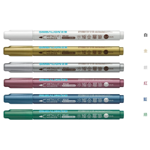 適用於各種材質表面,無論紙張、木材等吸附性高的介面,或不易吸附的塑膠、玻璃、陶瓷、光碟、金屬等材質,均可任意書寫及彩繪,尤其使用於深色紙張創作,更能突顯金屬光澤,創造閃耀迷人的金屬風采書