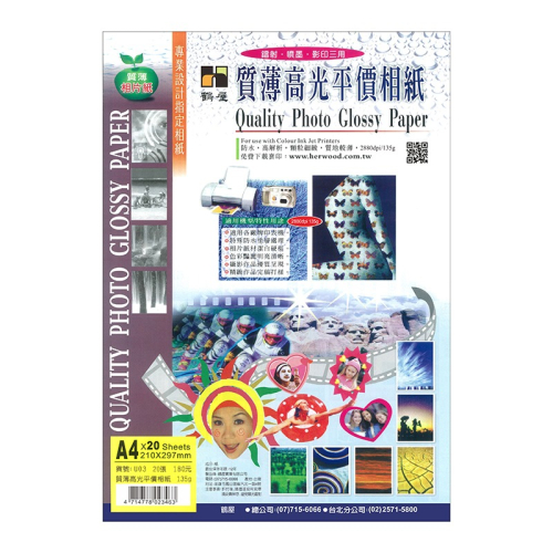 質薄高光平價125g A4x20 210x297mm U03